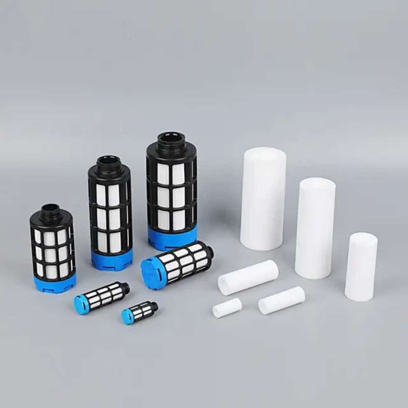 A plastic muffler is a specialized noise-suppression component crafted from durable, chemically resistant engineering plastics—such as polyethylene (PE), polypropylene (PP), ABS, and PTFE—to attenuate noise generated by exhaust air, gas flow, or pneumatic system operations. Unlike metal mufflers, which rely on heavy, rigid structures, plastic mufflers feature a uniform porous design that allows air to pass through while dispersing sound waves, significantly reducing noise levels without creating excessive back pressure that compromises system performance.